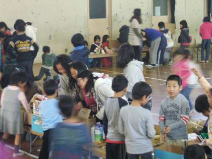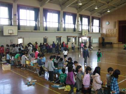 1年生は今日,生活科「はっぱのいろがかわったよ」の学習のまとめで『あきのにこきらランド』を開催しました。6年生のお兄さん,お姉さん,校長先生,教頭先生や他の先生方をお招きして楽しんでもらいました。たくさんの人に喜んでもらって1年生も大喜びでした。