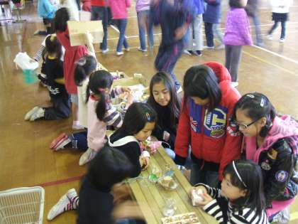 招待された6年生も楽しそうにお店を回りながら,「これ上手やなあ」「おもしろい〜」「わあ〜かわいい」など1年生にやさしい声かけをしていました。