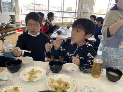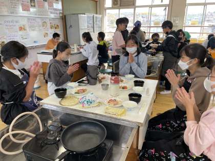 みんなで手を合わせていただきますしたり、作ったご飯を「美味しい!」と言いながら食べたり調理実習っていいですね!