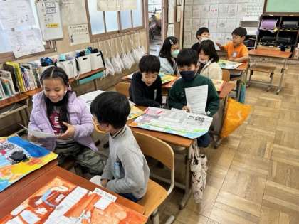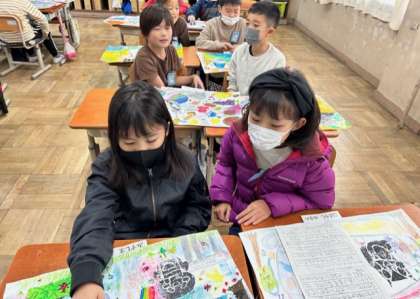 自分の作った作品を友達に語りました。