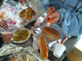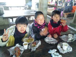 寒い中ですが,みんなでおいしく食べています。