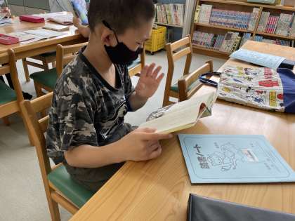 5年生になり、読書ノートを配布したので早速図書館へ。