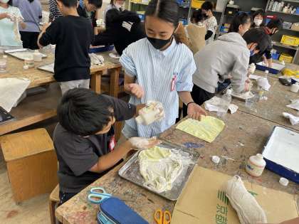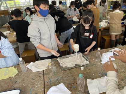 友だちと協力しながら液体粘土を使って自分の想像する形に固めていきました。