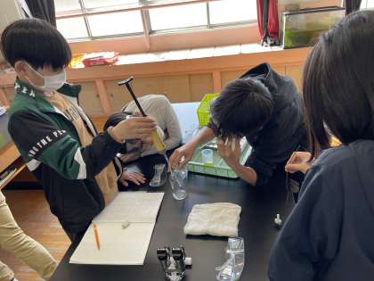 友だちと協力し合いながら、酸素と二酸化炭素の実験をしました。