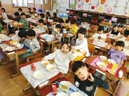 今日の給食に「トマトだご汁」が出ました。だご汁とはなんだろう?という子が多く、食べながらだんごが入っているだね!と給食からたくさんのことを学ぶ姿が見られました。
