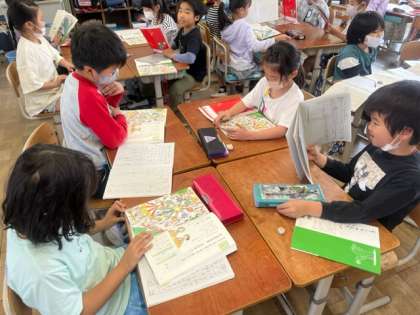 迷子の友達をさがすアナウンスを考えてみんなで探しました。