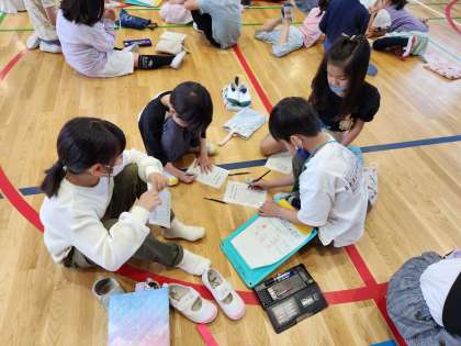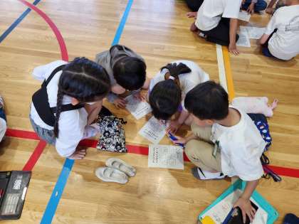 学校を回った後は、体育館に戻って振り返りをしました。お兄さん、お姉さんの言うことをしっかりと聞いて回れたかな?これから、もっともっと藤ノ森小学校のことを知っていってほしいと思います!