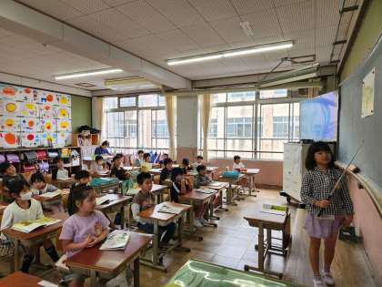 今日は国語で「はなのみち」の季節を考えました。挿絵や教科書の文から季節はいつなのか考えることができました。
