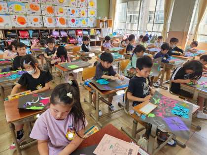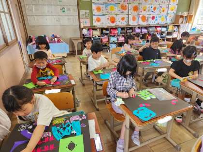 図画工作では、ちょきちょきかざりの仕上げをおこないました。