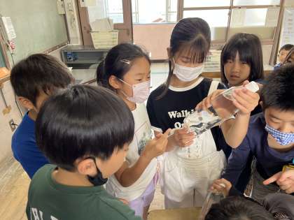 2つの水をくらべて、どちらが琵琶湖の水かを予想しました。