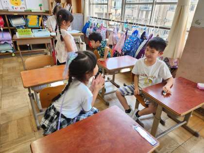 授業の最後には、数図ブロックを使ったゲームを行いました。隠した手の中には数図ブロックがいくつ入っているのかを考えました。