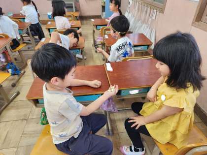 「ん〜、こっちの手には3個あるから、こっちの手の中には4個かな?」など、しっかりと学習したことを使って考えることができていました。