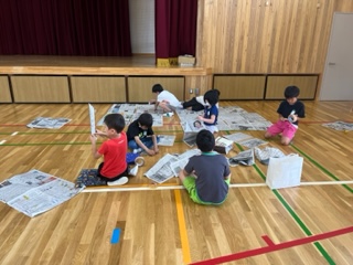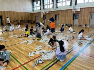 図画工作の授業で「新聞紙となかよし」の学習をしました。
