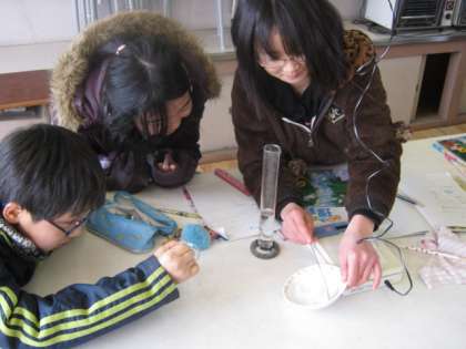 5g,10g,15g…と、とかす量を増やしていくと、下の方に食塩がとけ残ってきました!