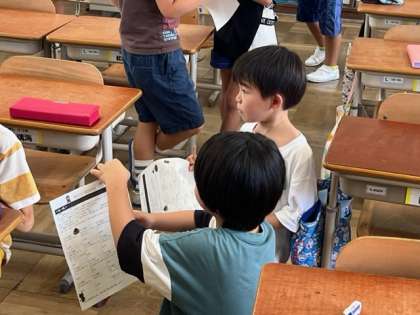 今日は「夏休みBINGO」をしました。『夏休み,花火をした人』『かき氷を食べて頭が