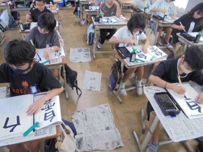 「漢字どうしの大きさに気をつけて書こう。」というめあてで書写の授業をしました。