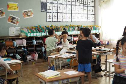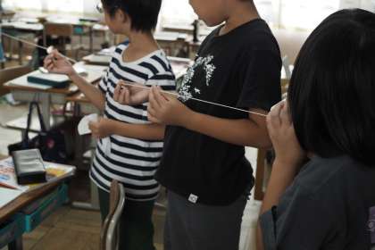 音の学習では、音がなるときに物はふるえているのか、音がつたわるときに物はふるえているのか、について実験をしました。糸電話の実験はみんな楽しそうでした。