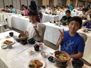 夕食を満喫しました。腹が減っては修学旅行が進まぬ…。