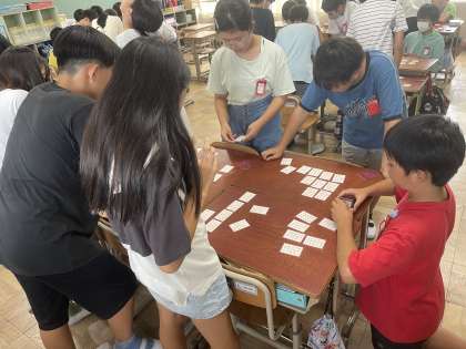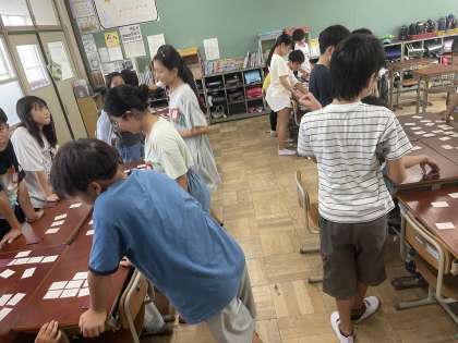 それに関連して百人一首大会をしました。上の句、下の句を聞き分け、一生懸命頑張っていました。