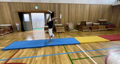 倒立や首はね起きなど高度な技に挑戦しています。