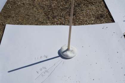理科の学習は、「地面のようすと太陽」でかげの学習をしています。時間がたつと、かげのいちはどのようになるのか、ということを観察しました。1時間ごとにかげのようすを観察すると、かげの位置が変わり、太陽の位置が変わっていることが分かりました。