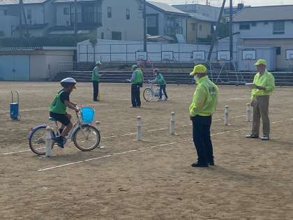 伏見警察署、藤森交通安全推進委員会の皆様の協力のもと、4年生の自転車安全教室を実施しました。