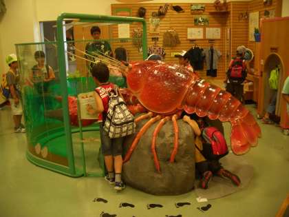 7月31日(金)には、「夏休み子どもチャレンジ」を実施しました。夏休みにもかかわらず、ほとんどの子どもたちが参加しました。はじめに、『琵琶湖博物館』で、琵琶湖のおい立ち、湖の環境と人々のくらし、淡水の生き物たちの見学をしました。ディスカバリールームでは、五感を使って楽しく体験しました。(写真左)