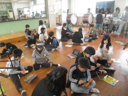 打楽器を使って音楽作りをしました。強弱やリズムなど音の出し方を工夫し、音の様々な響きを感じ取ることができていました。