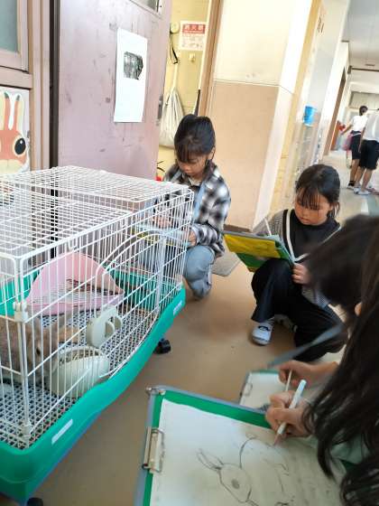 飼育委員会による「マロンイラスト大会」が開かれています。友達と楽しみながら、マロンの特徴について感じ取ることができました。