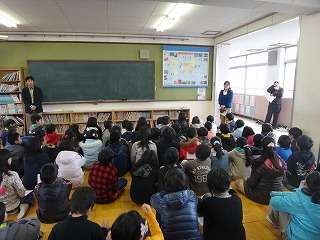 学年集会では,6年生の先生から卒業式のお礼をいただきました。
