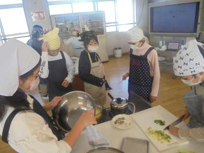 家庭科の授業で「ご飯とみそ汁」を作る調理実習をしました。