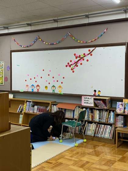 結果は少し先…。待ちわびる春と共に結果が…。期待と不安をちょっぴり感じながら校舎の見回りをしていると、今日もこっそり図書館の飾りを創る後ろ姿を発見。春の装いを創ってくださる姿、ありがたい限り…。