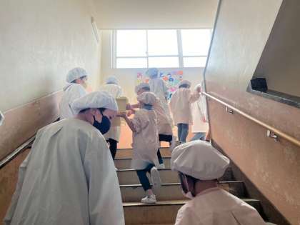 1年生は、6年生のおかげで給食当番のお仕事を頑張ることができています!