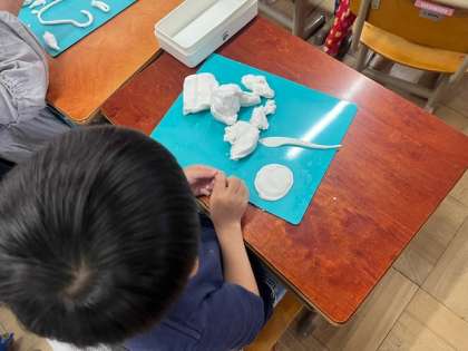新しいねんどで ねんどたいそう をしてから、みんなでごちそうをつくりました。