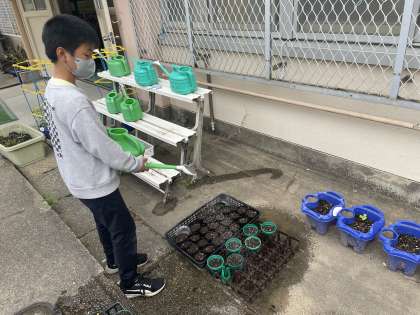 ホウセンカとひまわりの種まきをしました。