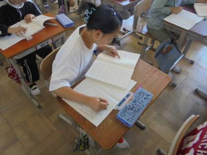 「求」「球」「救」のように同じ部分や同じ音をもつ漢字探しをしました。