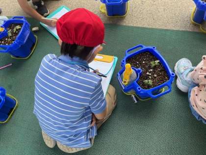 みんな毎日とっても楽しみにしていたので「めがでてる!!」と大喜びでした。
