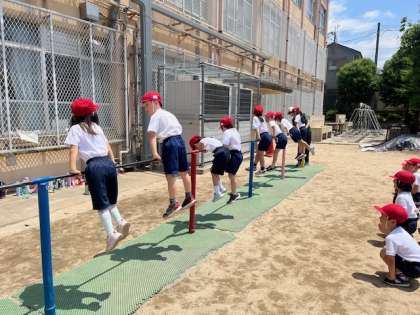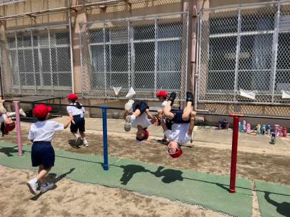 ちきゅうまわりや、まえまわりなど、今日は自分のできる技に取り組みました。