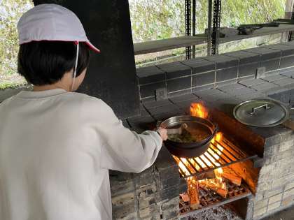 野外炊事も頑張りました。火をつけるってひと苦労…。