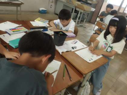 二つの子葉の特徴や違いに気を付けながら、観察をしました。