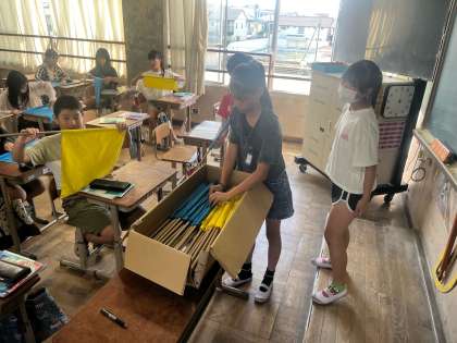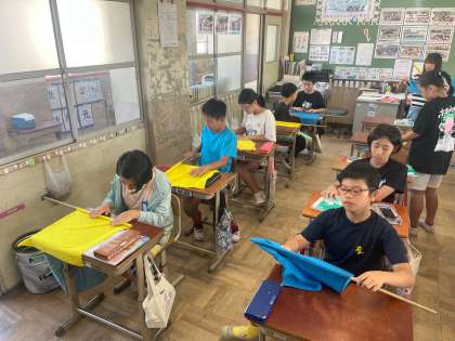 体育科学習発表会が終わり、今日はフラッグの片付けをしました。