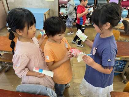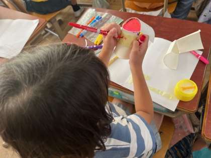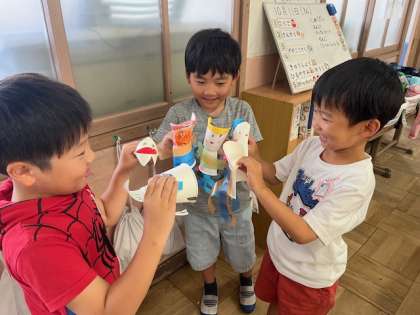 紙コップでお友達を作り,好きな飾りをつけました。
