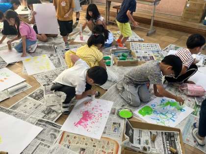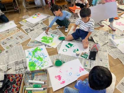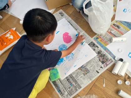みんな絵の具の感触を楽しみながら活動していました。