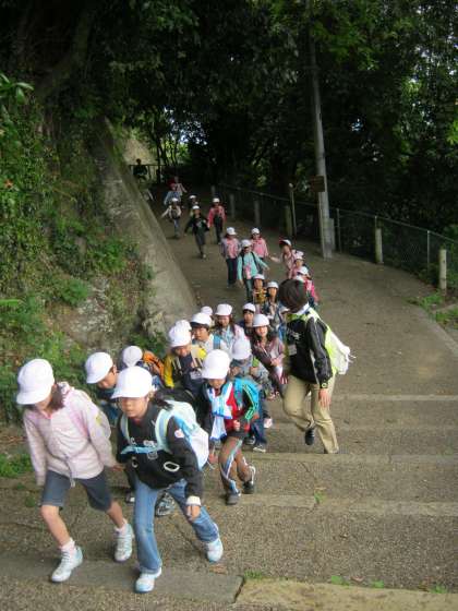 男山の長く続く階段をのぼり,男山レクリエーションセンター,エジソン公園と八幡の町を散策しました。いっぱい歩いて,走って,遊んでも疲れ知らずの子どもたち。本当に楽しい1日でした。