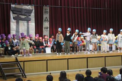 学習発表会で、藤森神社の魅力を全校に伝えました。