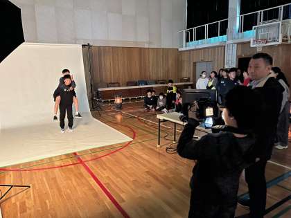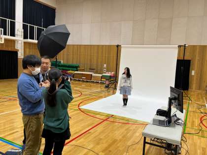 今日は、いつもの体育館が写真スタジオに大変身。本格的なセットでの撮影で、子どもたちもテンションが上がっていました。