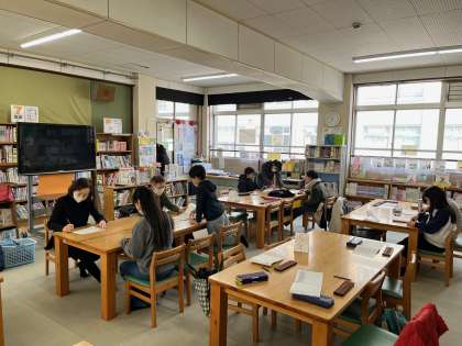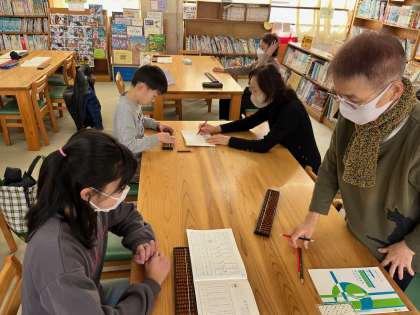 図書館では、『そろばん』を使って計算に取り組む子ども達の姿が!この1年間しっかり活動してきただけあって、そろばんの扱いも上手でした。パチパチとそろばんの玉を動かす音が、心地よかったです。きっとここにいる子ども達は、計算が好きなんだろうな…と感じていました。
