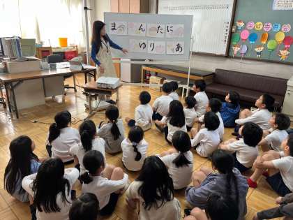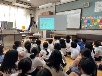 養護教諭による保健指導の後、身長と体重を測りました。少し伸びた身長を聞いて、子どもたちは大喜びでした。