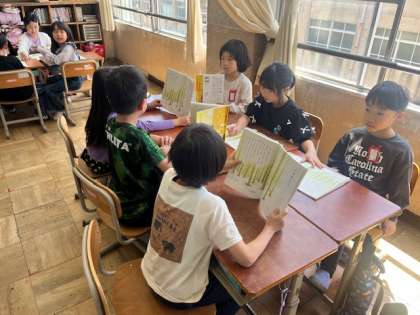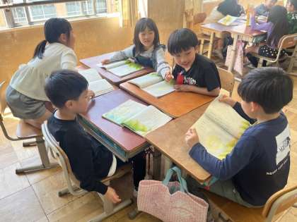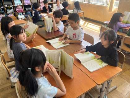 参観日の音読発表会にむけて「ふきのとう」をグループで練習しています。