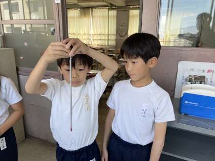 観察をする際、気温をはかるので、温度計の使い方を練習しました。